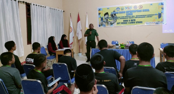 Dalam kesempatan itu, Peltu Rahman Taufiq memperkenalkan ideologi negara yakni Pancasila kepada para siswa siswi SMK Negeri 1 Luwu Utara di ruangan Aula sekolah tersebut.
