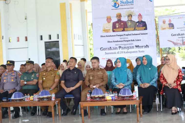 Belopa – Dalam rangka memperingati Hari Jadi ke-356 Provinsi Sulawesi Selatan sekaligus menstabilkan pasokan dan harga pangan, Dinas Ketahanan Pangan Provinsi Sulawesi Selatan bekerjasama dengan Dinas Ketahanan Pangan Kabupaten Luwu menggelar Gerakan Pangan Murah (GPM) di Tribun Lapangan Andi Jemma, Belopa, pada Senin, 13 Oktober 2025.