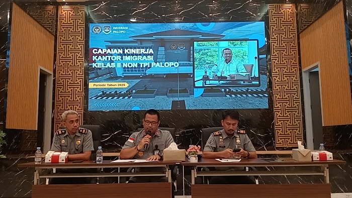 Kepala Kantor Imigrasi Kelas II Non TPI Palopo Yogie Kashogi memaparkan capaian kinerja bidang pelayanan, pengawasan, penindakan, teknologi informasi keimigrasian, hingga serapan anggaran untuk periode Januari hingga 8 Desember 2025.