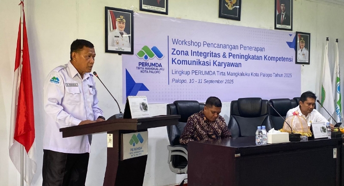 KATASATU.co.id | PALOPO – Direktur Utama Perumda Tirta Mangkaluku (TM) Kota Palopo, Tawakkal resmi membuka kegiatan Workshop Pencanangan Penerapan Zona Integritas dan Peningkatan Kompetensi Komunikasi Karyawan di kantor Perumda TM, Rabu 10 September 2025.