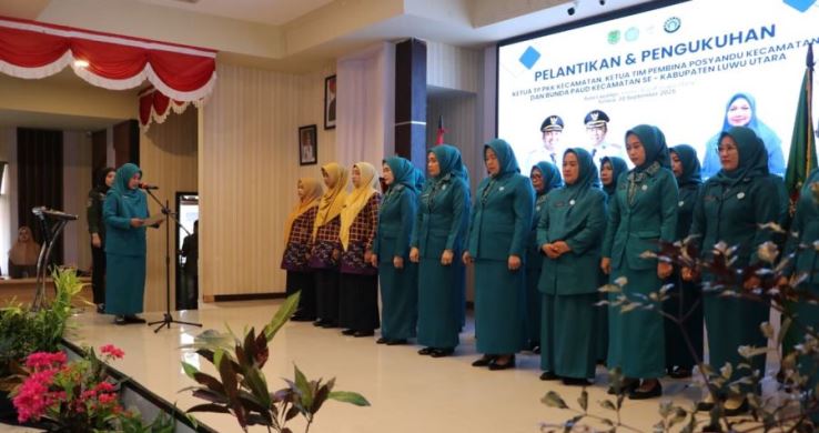 LUWU UTARA | KATASATU.co.id – Ketua TP PKK Kabupaten Luwu Utara, Misnawati Andi Abdullah Rahim secara resmi melantik Ketua Tim Penggerak PKK Kecamatan se-Kabupaten Luwu Utara di Aula Lagaligo, Kabupaten Luwu Utara, Sulsel, Selasa (30 September 2025).