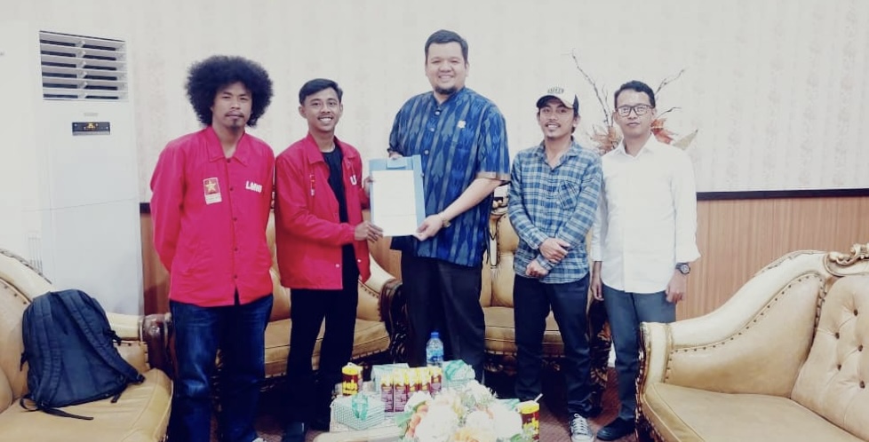 PALU — Eksekutif Liga mahasiswa nasional untuk demokrasi Kota palu (Ek Lmnd Palu), bertemu Ketua DPRD Kota Palu, Rico Andi Tjatjo Djanggola, di ruang pertemuan Kantor DPRD kota palu.