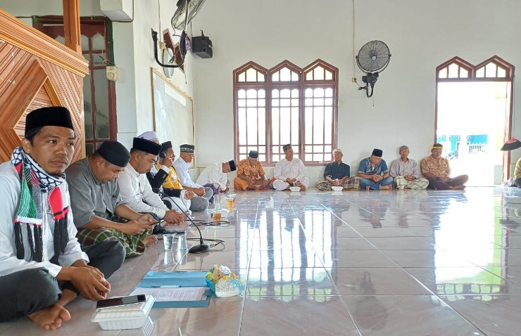 Warga Desa Seppong saat gelar musyawarah khusus bahas rencana pemekaran wilayah menjadi Desa Seppong Timur. di Masjid Nurul Auliya, Dusun Batu Papang, Kecamatan Belopa Utara, Jumat (3 Oktober 2025). (Fatmawati)
